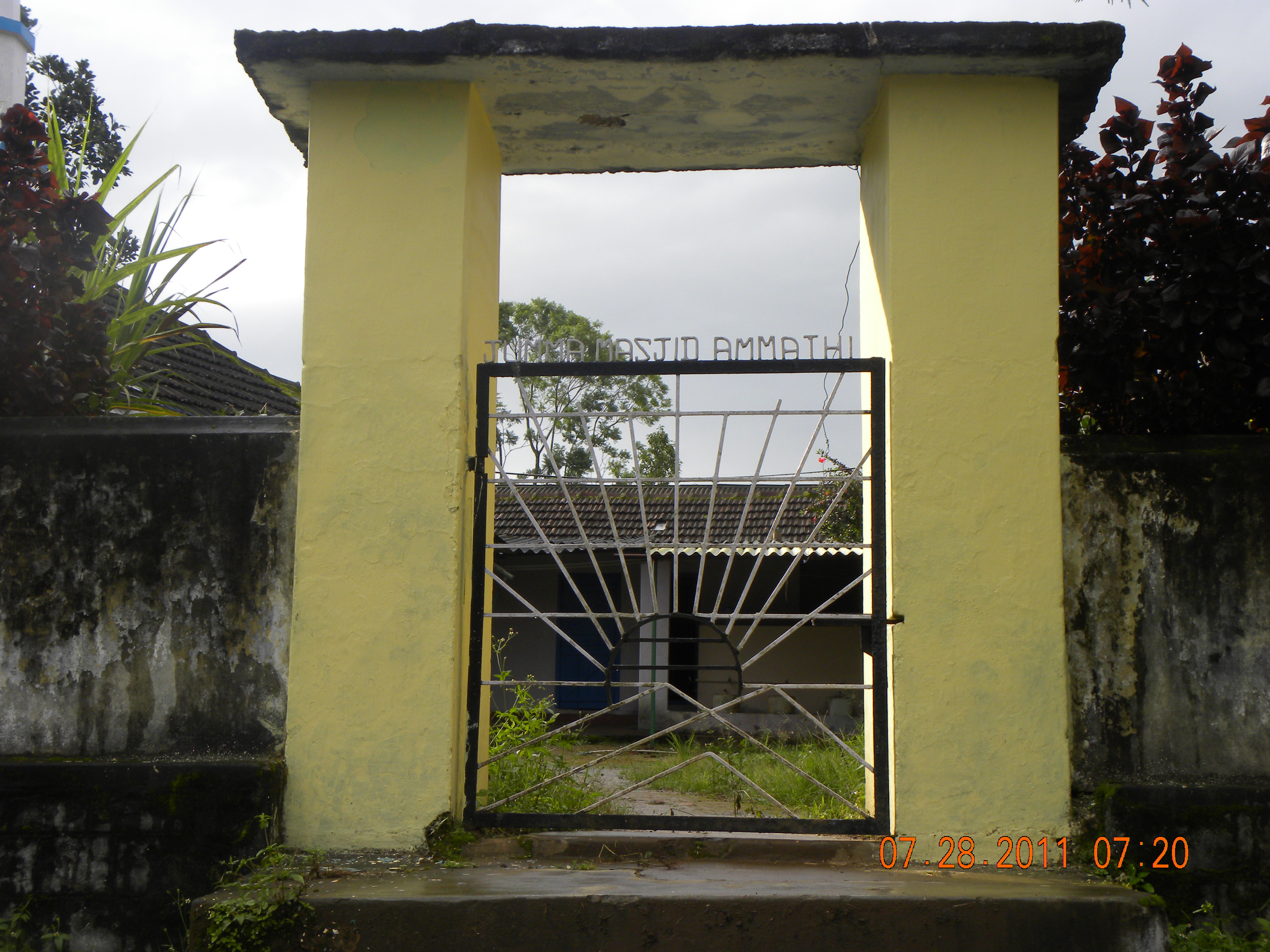 Photographs providing Visuals of the present ‘Jumma Masjid Ammathi – Centenarian ‘ mosque were taken after 100 years of its being established. Photographs have been taken in 2008 and in 2011.
